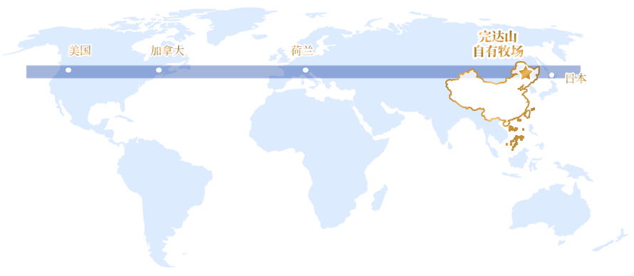 完達山乳業自有奶源基地位于北緯42°-47°,與荷蘭、丹麥、美國北部各州及日本的北海道等國家和地區,