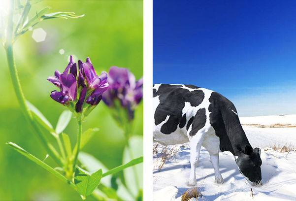 北緯45°的充足光照,讓這里的植被擁有了高含量的植物粗蛋白;溫帶大陸性氣候雨熱同期的生長優勢,使得奶牛最愛的紫花苜蓿牧草生長得十分茂盛;